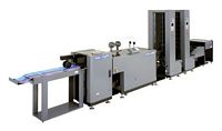 Zobacz więcej: Szczegóły techniczne/funkcje maszyny/obsługaTo pierwsza w pełni automatyczna, wysoko wydajna linia do oprawy zeszytowej pracująca z prędkością do 5 000 broszur lub 10 000 zebranych zestawów na godzinę. Modułowa konstrukcja systemu broszurującego oznacza, że drukarnia może zainwestować w ten moduł, który jest na bieżąco potrzebny oraz rozbudowywać system wraz ze zmianą wymagań. System broszurujący Duplo 5000 odznacza się wszechstronnością i daje możliwość podawania okładek o gramaturze do 300g/m2, a także arkuszy o zróżnicowanych formatach. System umożliwia produkcję 100 stronicowych broszur. Zbieraczki podciśnieniowe mogą działać niezależnie od siebie. Pozwala to na przetwarzanie dwóch zadań równocześnie. Jedna zbieraczka może zbierać arkusze i podawać je do agregatu szyjąco-falcującego, druga natomiast może zbierać arkusze w zestawy kierując je do układarki. System może składać się maksymalnie z 6-ciu 10 półkowych zbieraczek. Podciśnieniowy system podawania papieru eliminuje podwójne pobrania arkuszy co wpływa na efektywność i ciągłość pracy. Każda półka zbieraczki podciśnieniowej wyposażona jest w regulowane wiatraczki, które dostarczają zmienną ilość powietrza. Zbieraczki podciśnieniowe Duplo wyróżniają się najwyższą pojemnością półek (60 mm) w swojej klasie, dzięki czemu zwiększa się czas działania urządzenia. System oferuje również możliwość tzw. "wkładkowania" – dodawanie do broszury dodatkowego arkusza, który nie jest zszywany z broszurą, stanowi on luźny "insert". Dotykowy panel LCD agregatu szyjąco-falcującego umożliwia sterowanie wszystkimi funkcjami obcinarki z głównego urządzenia. W pamięci można zapisać 12 najczęściej wykonywanych zadań, co ułatwia przełączanie pomiędzy poszczególnymi pracami. Obsługiwane formaty przy szyciu narożnym i bocznym to: od 170 x 250 do 250 x 350 mm. W przypadku szycia grzbietowego oraz z oczkiem format arkusza wynosi: od 75 x 120 do 250 x 350 mm. |